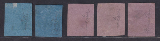 108 - 1859 - Effigie di Federico II di Borbone, 2 grana azzurro I tavola carta di Palermo lotto di 5 esemplari nuovi con gomma (6)