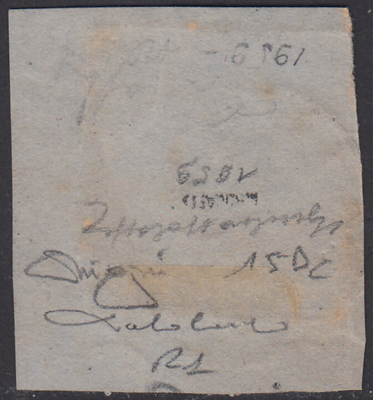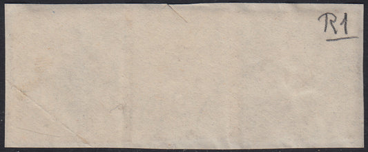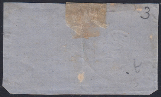 SARD300 - 1862 - IV emissione c. 20 azzurro oltremare II tavola usato su frammento con annullo del tipo D.c. e C. “Torre Bajro 8 Feb 62”. (15Dc, p.ti R1).