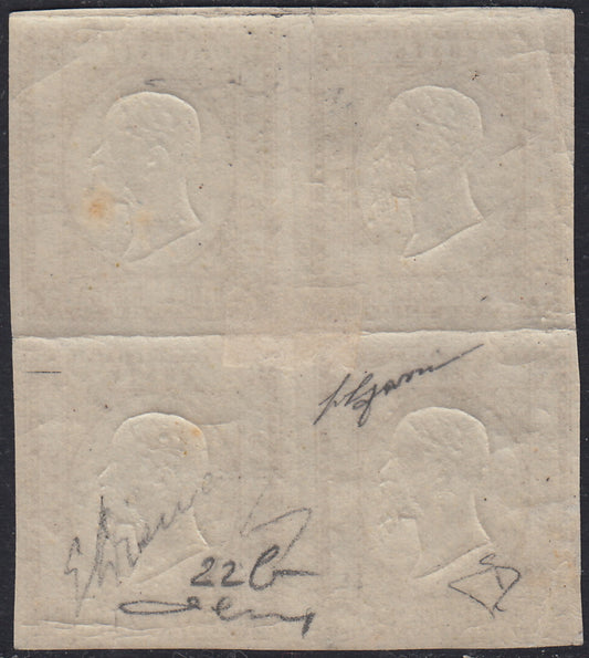 BO2511_68 - 1861 - 10 grana bistro oliva blocco idi quattro esemplari nuovo con gomma, colore splendido (22b)