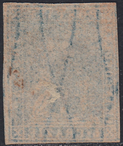 F9_141 - Leone di Marzocco, 2 crazie azzurro grigio verdastro su carta bianca e filigrana linee ondulate usata, annullo muto a ragno inconsueto su questa emissione (13a).