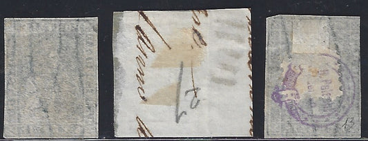 RL26/28 - 1857 - Leone di Marzocco, insieme di valori su carta bianca e filigrana linee ondulate. (13, 14, 15).