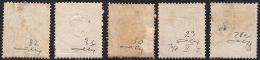 BO24_248 - 1859 - II emissione II tipo, serie dei cinque valori emessi usata (28a, 29, 30, 31, 32).