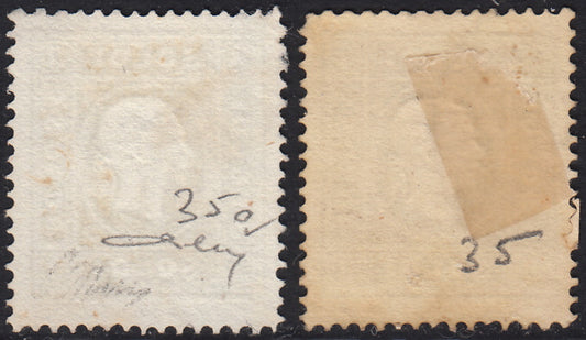 BO24_249 - 1862 . III emissione, s. 3 verde giallo e s. 3 verde azzurrognolo usati (35, 35a).