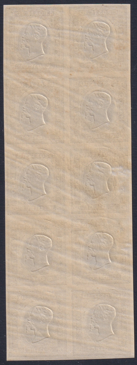 F19_56 - 1861 - Non Emessi, c. 10 terra d'ombra blocco di 10 esemplari nuovo gomma integra (2).