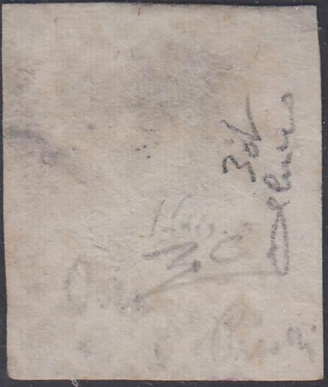 1851 - Effigie di Vittorio Emanuele II volta a destra, I emissione c. 40 lilla rosa (3c) usato con muto a rombi