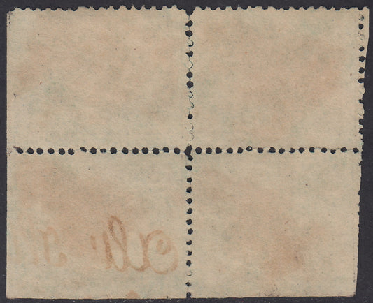 1868 - III emissione c. 2 verde chiaro blocco di quattro esemplari di cui uno con varietà (22, 22c)