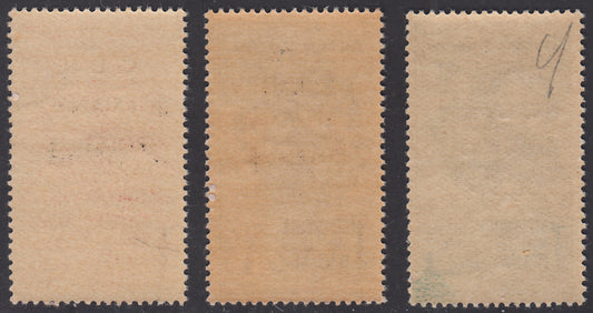 CLN28 - 1944 - Francobolli di RSI soprastampati "CLN ARIANO POLESINE" serie di tre valori cn soprastampe di colore diverso nuova con gomma integra (Unif. 38/40).