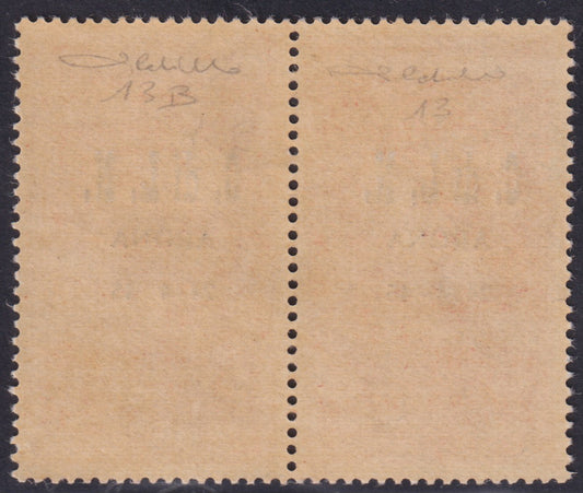 CLN Arona - Fratelli Bandiera L. 2,50 carminio coppia orizzontale di cui una con varietà (13 + 13b)