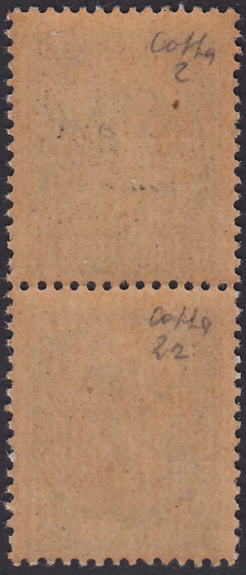 CLN98 - 1945 - Mantova, 1,85 su 15 centesimi verde grigio, esemplare con varietà "senza punto dopo P e dopo S", posizione 83 del foglio, in coppia verticale con il normale nuova con gomma integra. (2, 2r)