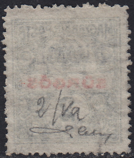 Fiume237 - 1918 - Segnatasse d'Ungheria 5 filler verde e rosso con soprastampa a macchina della II tiratura capovolta e fortemente spostata a sinistra usato (6aaa)