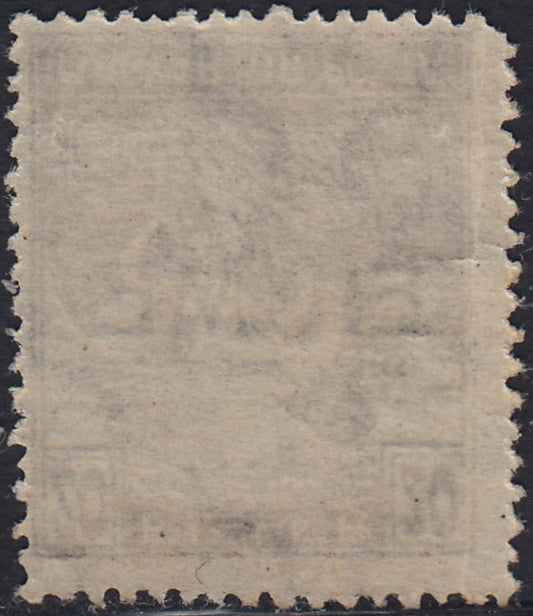 Fiume482 - 1918 - Segnatasse d'Ungheria 50 filler nero e verde filigrana C con soprastampa FIUME a mano del I tipo fortemente spostata in alto (C3/Ia)