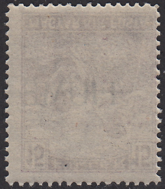 V151 - 1918 - Francobollo d'Ungheria della serie Mietitori, 15 filler violetto con soprastampa a macchina FIUME capovolta, nuovo con gomma (9ac)