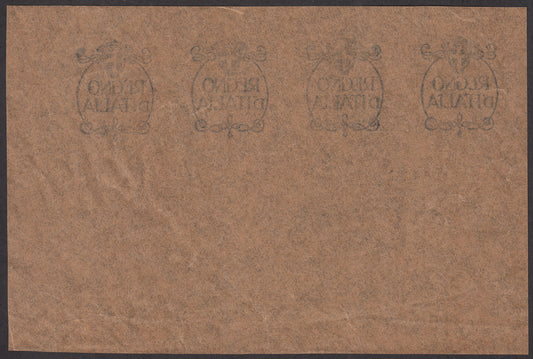 F6_208 - 1924 - Regno d'Italia con fregi e stemma, prova di soprastampa blocco di quattro esemplari