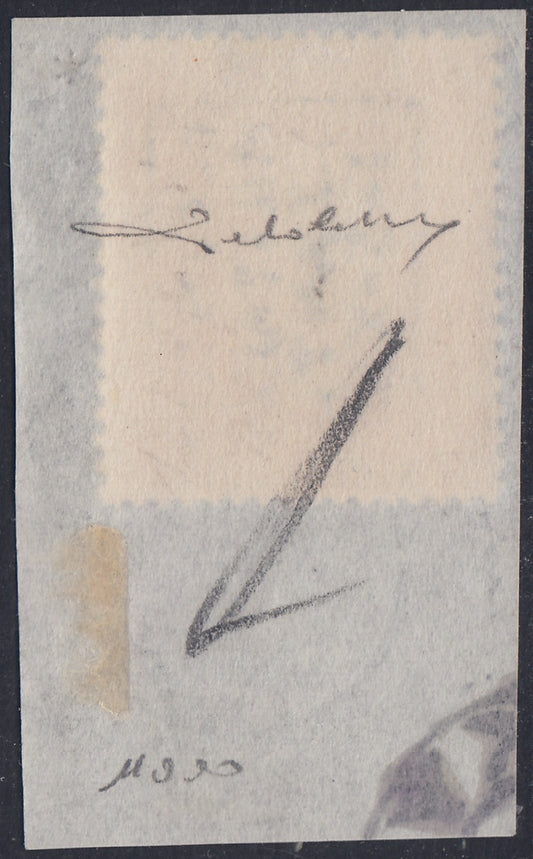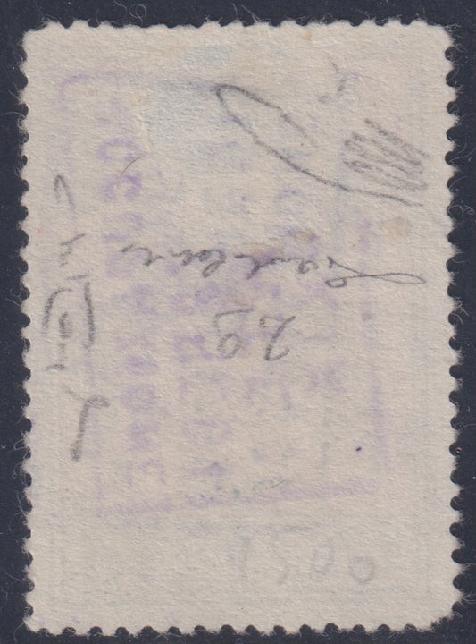1941 - Re Giorgio II di Grecia, 100 dracme carminio con soprsatampa a mano in violetto nero dall'alto verso il basso, usato su frammento (4f)