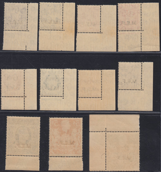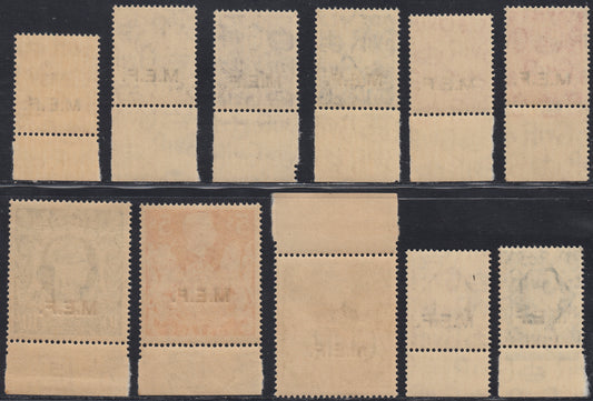 MEF1 1943/47 - Francobolli di Gran Bretagna, effigie di Giorgio VI soprastampati M.E.F. tiratura di Londra nuovi con gomma integra (6/16)