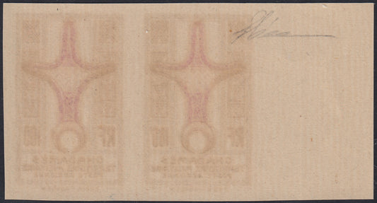 FEZ27 - 1949 - Emissione per il Ghadamès, 100f. grigio violetto e lilla, colori diversi non dentellato, coppia orizzontale nuova con gomma integra (A6/IN).