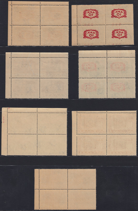 Dode3 - 1947 - Francobolli di Grecia con nuovo valore in soprastampa e soprastampati ulteriormente, serie completa in quartina nuova gomma integra (2/7 + 8f)