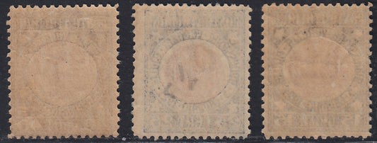 RN188 - 1913 - Unità d'Italia soprastampata con nuovo valore, serie di tre francobolli nuovi integri (99/101).