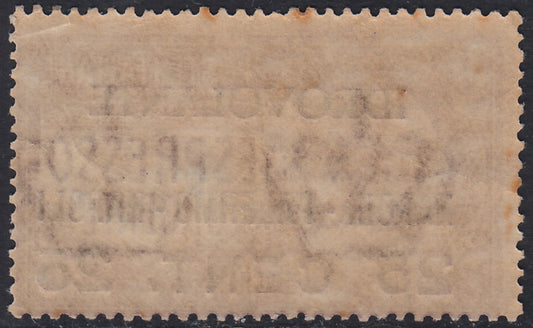 RN296 - 1917 - Espresso urgente non emesso soprastampato "IDROVOLANTE NAPOLI - PALERMO - NAPOLI 25 CENT. 25" violetto nuovo con gomma integra. (2)