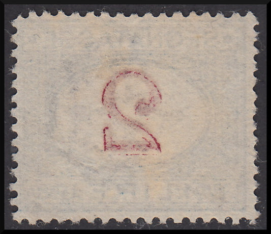 Regno d'Italia, segnatasse, L. 2 azzurro e carminio con decalco della cifra "2", usato (29c)