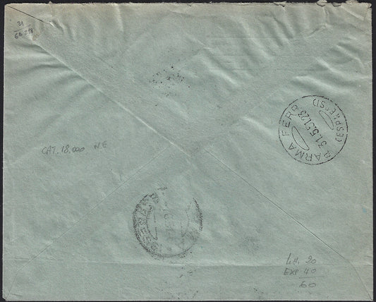 F29_192 - 1951 - Feste e Concorsi Ginnici Internazionali a Firenze, serie completa di tre valori in coppie orizzontali su lettera Espresso da Firenze per Parma 31/5/51 in perfetta tariffa. (661/663).