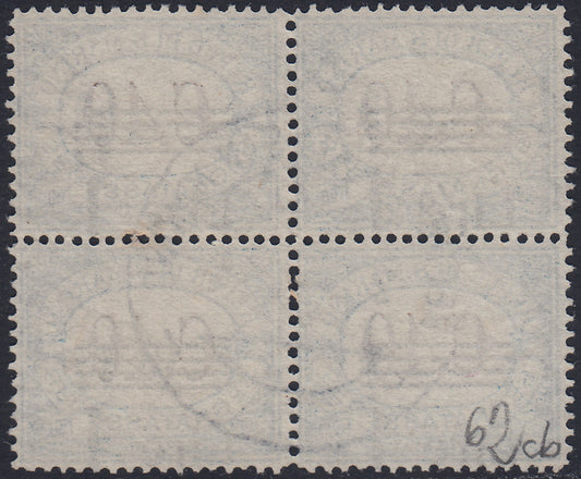 SM33 - 1940 - Segnatasse, Cifra, L. 1 su c. 40 azzurro blocco di 4 esemplari con soprastampa fortemente spostata in basso, usata (62cb).