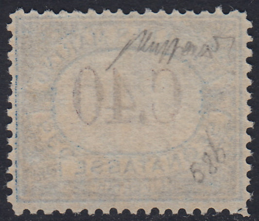 SM31 - 1940 - Segnatasse, Cifra, L. 1 su c. 40 azzurro con soprastampa fortemente spostata in basso, usato (62cb).