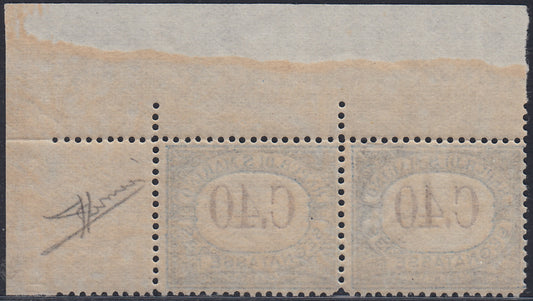 SM37 - 1939 - Segnatasse, Cifra, c. 40 azzurro coppia orizzontale di cui un esemplare senza filigrana nuovacon gomma integra (58 + 58b).