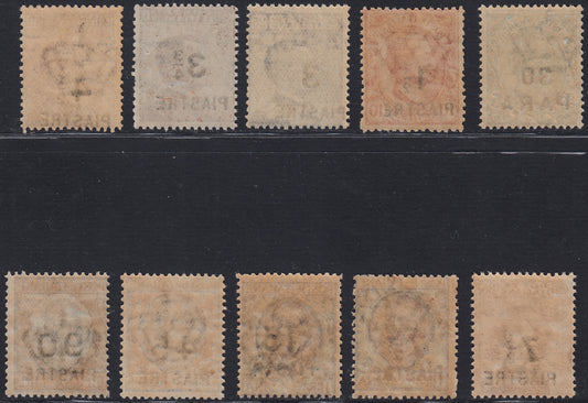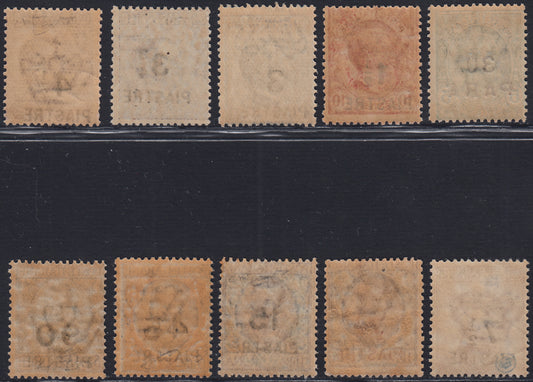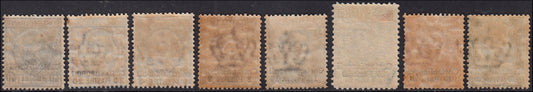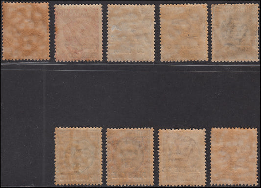 PPP97 - 1923 - Francobolli soprastampati con nuovo valore in piastre e para, nove esemplari nuovi con gomma originale (68/75)