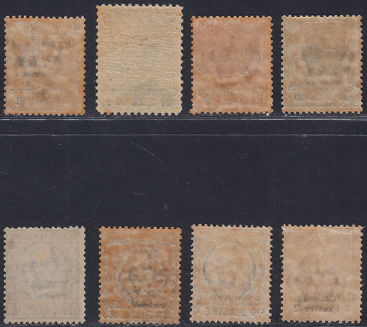 LevGerus1 - 1909/11 - Francobolli d'Italia con soprastampa Gerusalemme e nuovo valore, serie completa di otto valori nuova con gomma originale e traccia di linguella (1/8).
