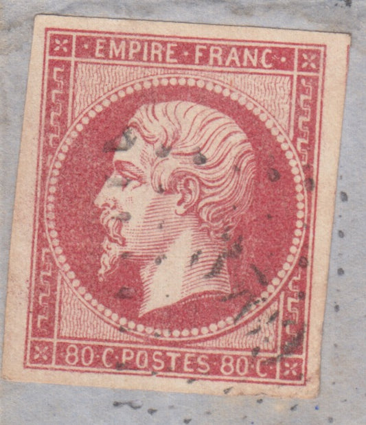 Francia, Napoleone III non dentellato, c. 80 carminio isolato su lettera da Smirne per Torino 31/7/1862