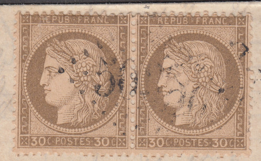 Francia, Cerere dentellata non dentellato, c. 30 bruno coppia orizzontale su lettera da Salonicco per Livorno 3/1/1873