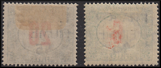 Fiume196 - 1918 - Segnatasse di Ungheria soprastampate Fiume a macchina e nuovo valore a mano "Franco 45", serie di due valori nuovi con gomma originale (29, 30)