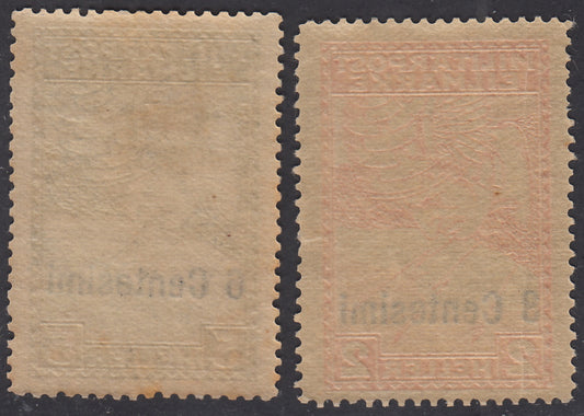 T56 - 1918 - Occupazione Austriaca del Friuli e del Veneto, Espressi di Bosnia soprastampati "3 cent." rosso e "6 cent." verde oliva nuovi con gomma (1, 2)