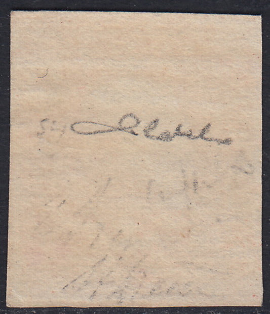 EBS11 - 1859 - Effigie di Ferdinando II di Borbone volta a sinistra, 5 grana carminio scuro I tavola carta di Napoli nuovo con gomma originale, (9b).