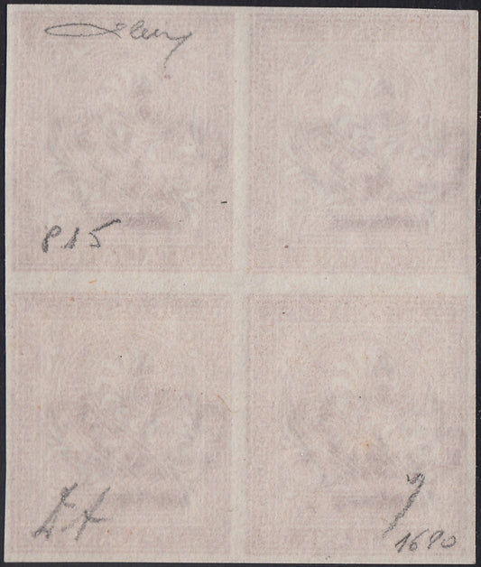 VEII126 - 1863 - Emissione De La Rue, c.60 lilla chiaro tiratura di Londra blocco di 4 della prova d'archivio nuova gomma integra (P21)