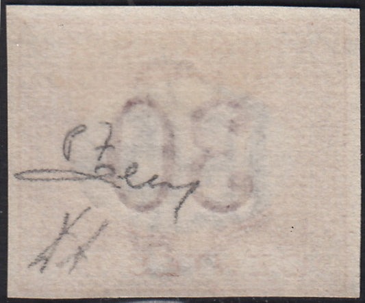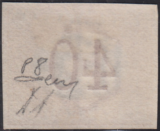 VEII118 - 1863 - Emissione De La Rue, c. 40 rosa carminio non dentellato e con soprastampa SAGGIO nuovo con gomma (L20, saggio)