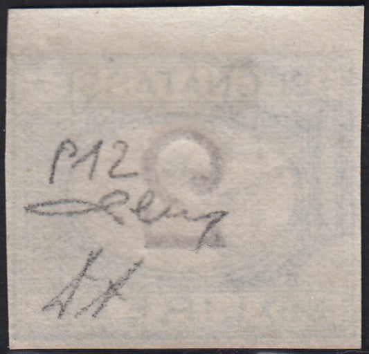 VEII117 - 1863 - Emissione De La Rue, c. 15 celeste non dentellato e con soprastampa SAGGIO nuovo integro (L18, saggio)