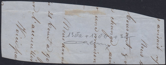 Bo24_205 - 1863 - Frammento affrancato da Messina con c. 5 verde giallastro chiaro e scuro quattro valori + emissione dentellata c. 40 rosa (13Da + 13Db + 3d).