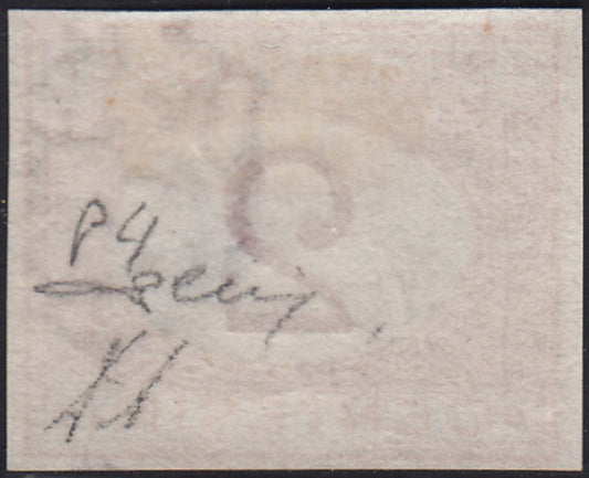 E3_15 - 1863 - Emissione De La Rue, tiratura di Torino, c. 60 lilla usato su framento con annullo di Virgilio e numero di tavola 119 in doppio rettangolo, unico noto (T21)