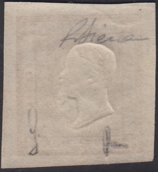 BO21_59- 1862 - Stampati, c. 2 bistro bruno esemplare senza cifra ma con impressione dell'effigie sovrana nuovo con gomma integra, così detto "sperimentale", esemplare dai margini notevoli. (10S).