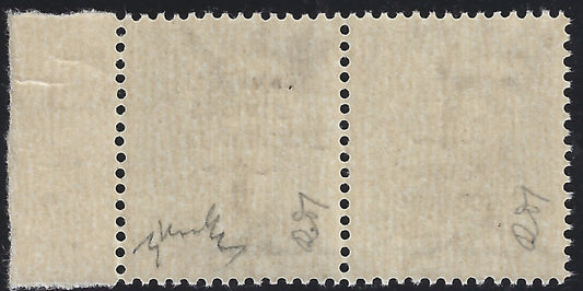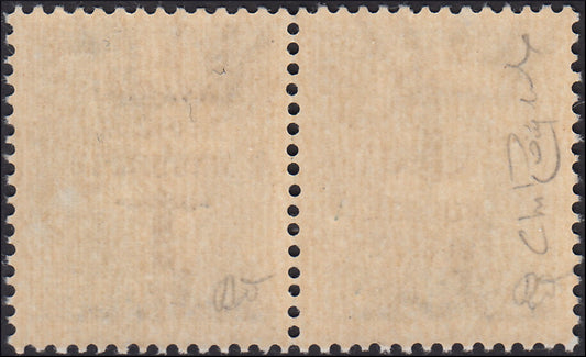 F6_187 - 1944 - Imperiale c. 15 verde grigio coppia orizzontale con soprastampa tipo "k", un esemplare diritta e uno capovolta, nuova con gomma integra. (P26b).