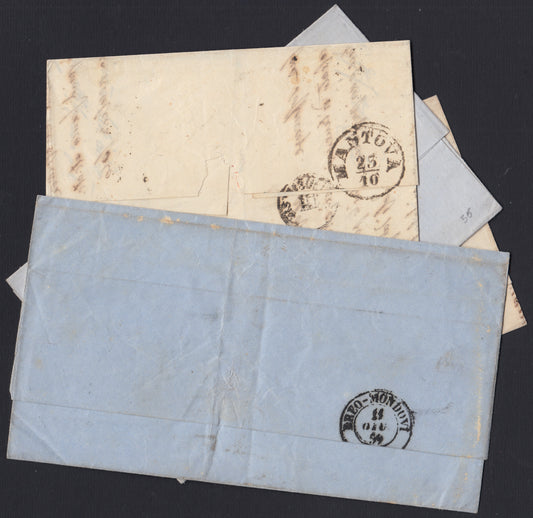 E11_36 - 1859/60 - Insieme di tre lettere affrancate con c. 20 della I tavola, annulli di Biella, Laigueglia,Milano e Torino (15Ba, 15C, 15Ca, 15Cc).