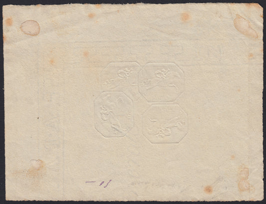F23_198 - 1820 - Cavallini, emissione definitiva c. 50 prove multiple dell'impronta a secco su frammento di carta filigranata. (6, prova).