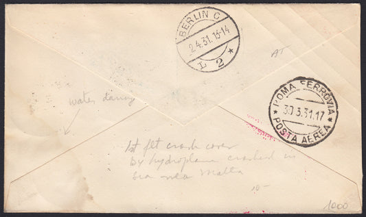 PA437 -1931 - 1° volo Tripoli - Berlino 1/4/31 con affrancatura di Libia e Tripolitania (affrancatura diversa) - Tappa Tripoli - Berlino - (235e)