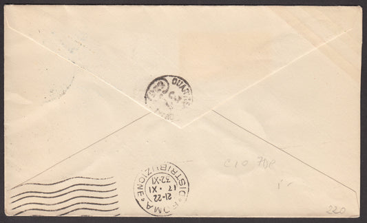 PA241 - 1931 - 1° volo Trieste - Genova 17/5/31 Affrancatura in Fermo posta Tassata e riscossa