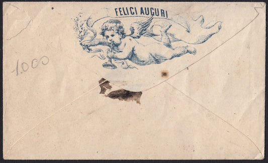 CG150 - 1881 - Biglietto d'Auguri da Savigliano per Città affrancato con c. 2 su L. 2 lacca scuro, oggetto molto particolare (34).