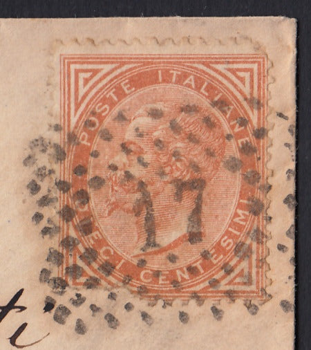 VEII177 - 1867 - De La Rue tiratura di Londra c. 10 ocra arancio isolato su letteta da Milano per Locarno 28/5/67 (L17)