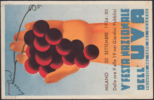 UT173 - 1934 - Cartolina illustrata con annullo speciale Milano esposizione Aeronautica Italiana 27/9/34 diretta a Firenze affrancata con Galvani c. 75 + Medaglie P.A. c. 75 bruno, valori gemelli (365, A76).