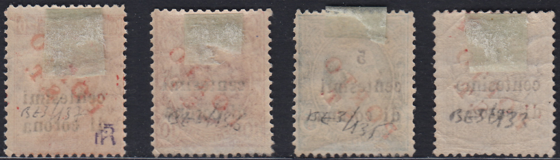 BZ30 - 1918/19 - Trentino Alto Adige, ufficio di Bolzano 3, francobolli d'Italia sopratampati in centesimi di corona + PORTO S.T. in rosso, quattro valori nuovi con gomma. (BZ3/133+135/7)